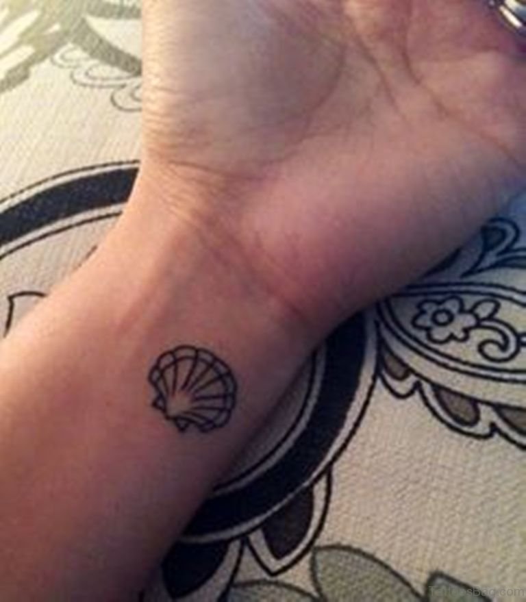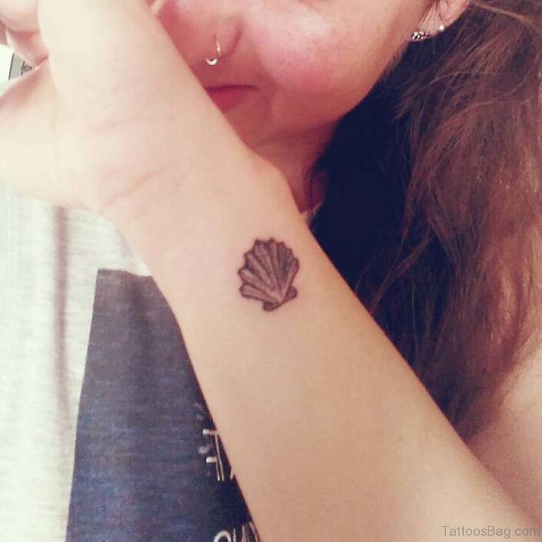 Cute Sea Shell Tattoo On Wrist