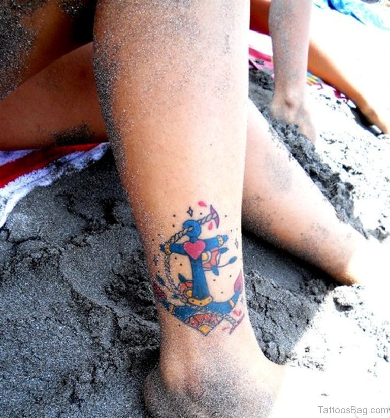 Lovely Heart Anchor Tattoo On Ankle