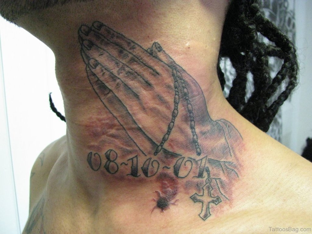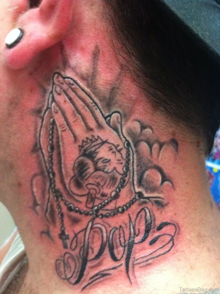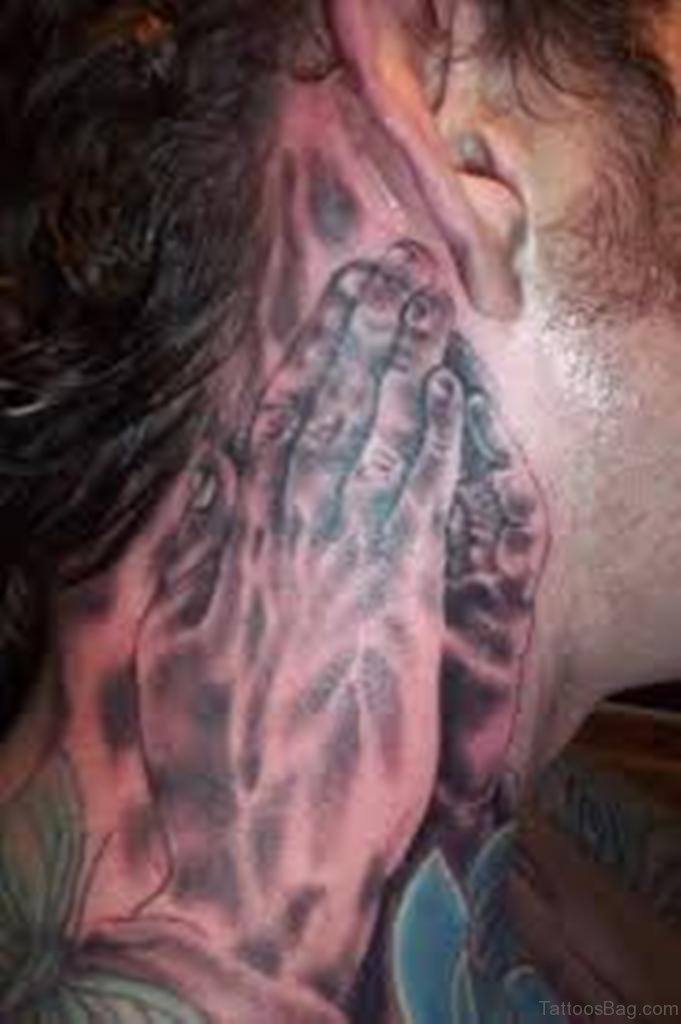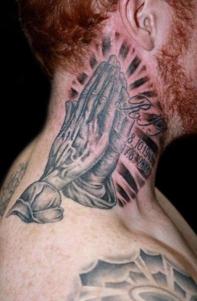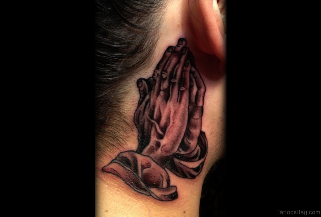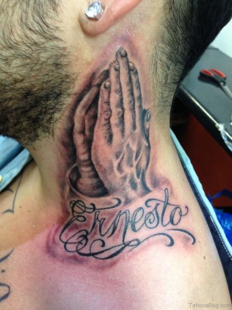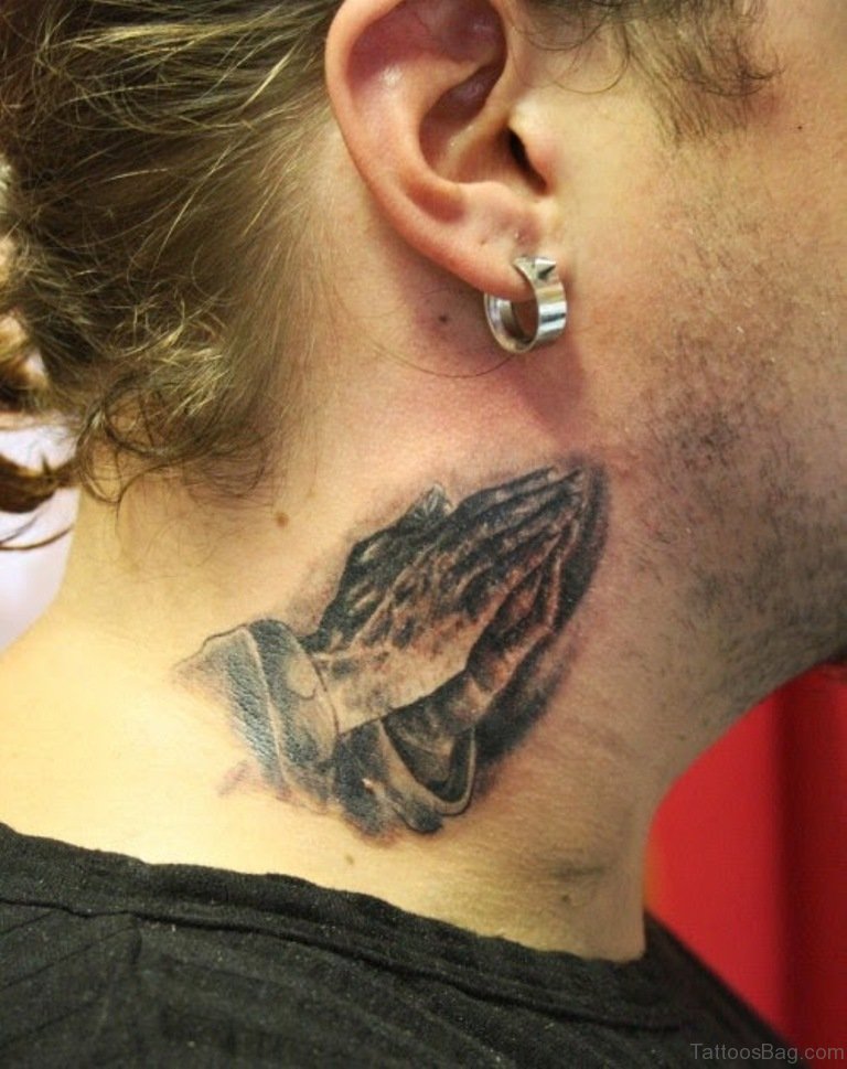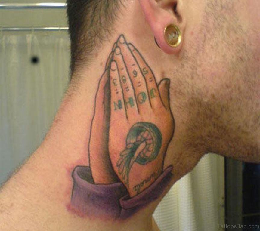 Praying Hands Tattoo Design On Neck