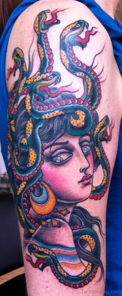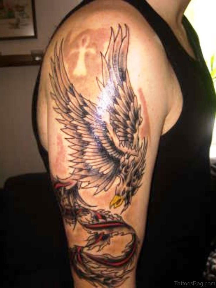 Winged Egyptian Bastet Cat Tattoo On Shoulder