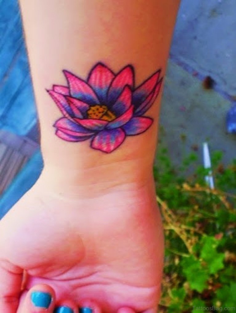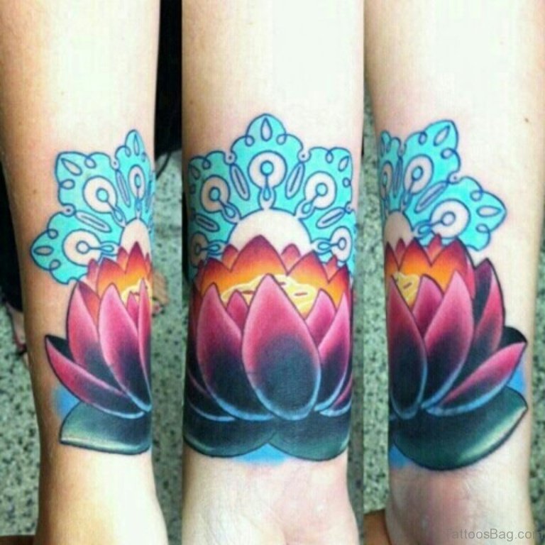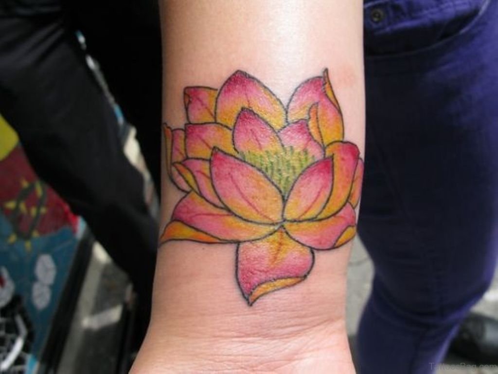 Colored Lotus Tattoo On Wrist