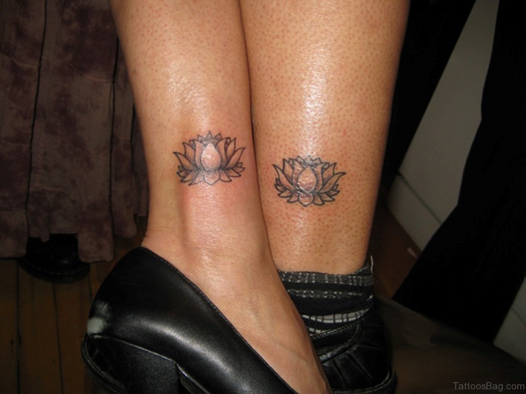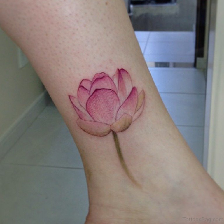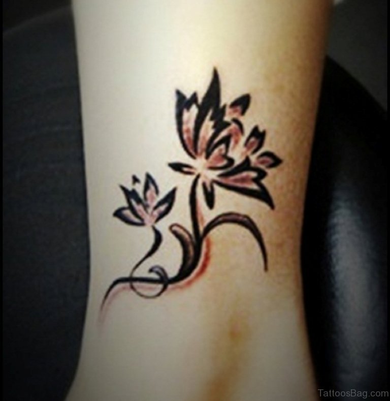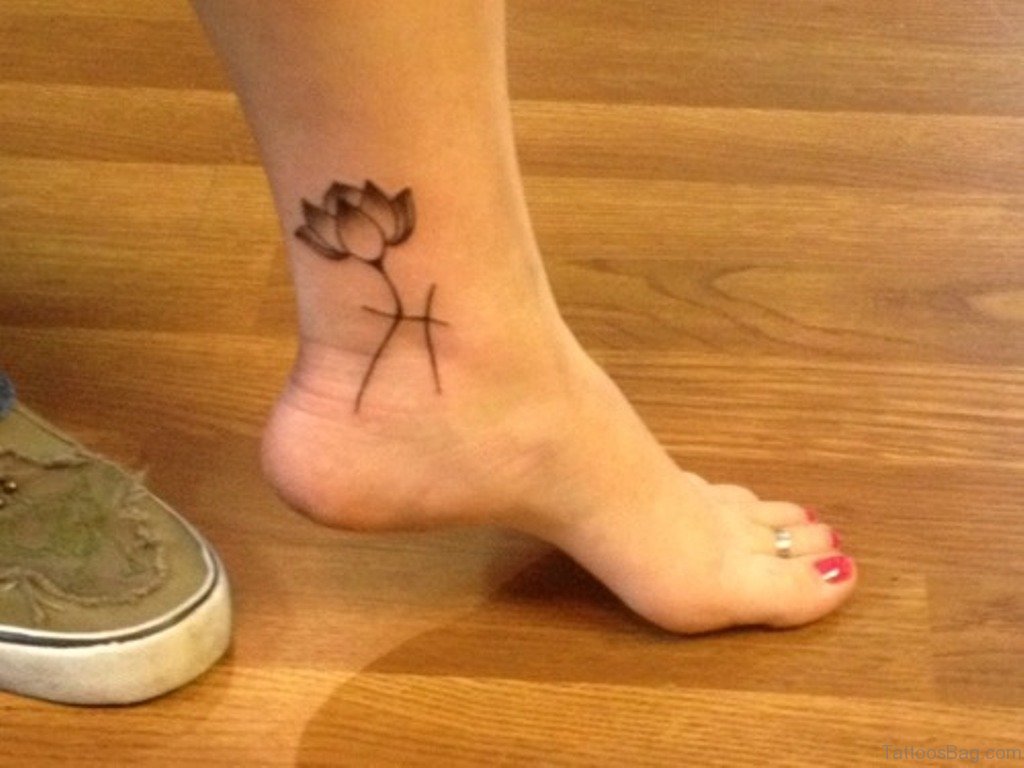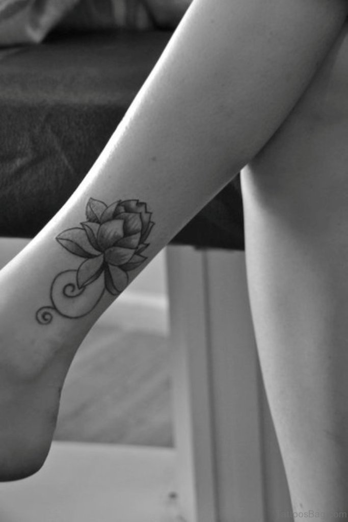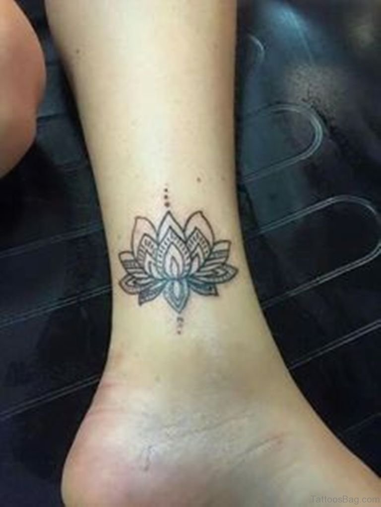 Black Ink Lotus Flower Tattoo Design For Inner Ankle