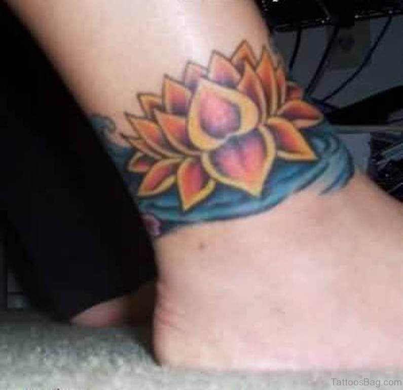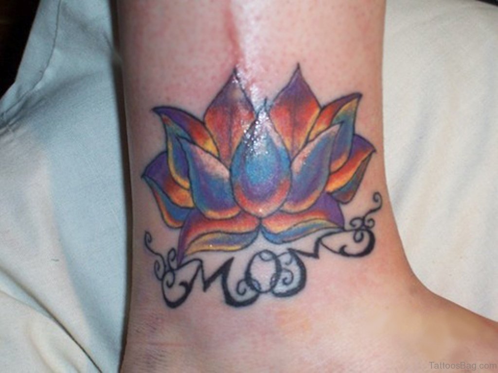 Asian Lotus Flower With Ohm Symbol Tattoos On Ankle