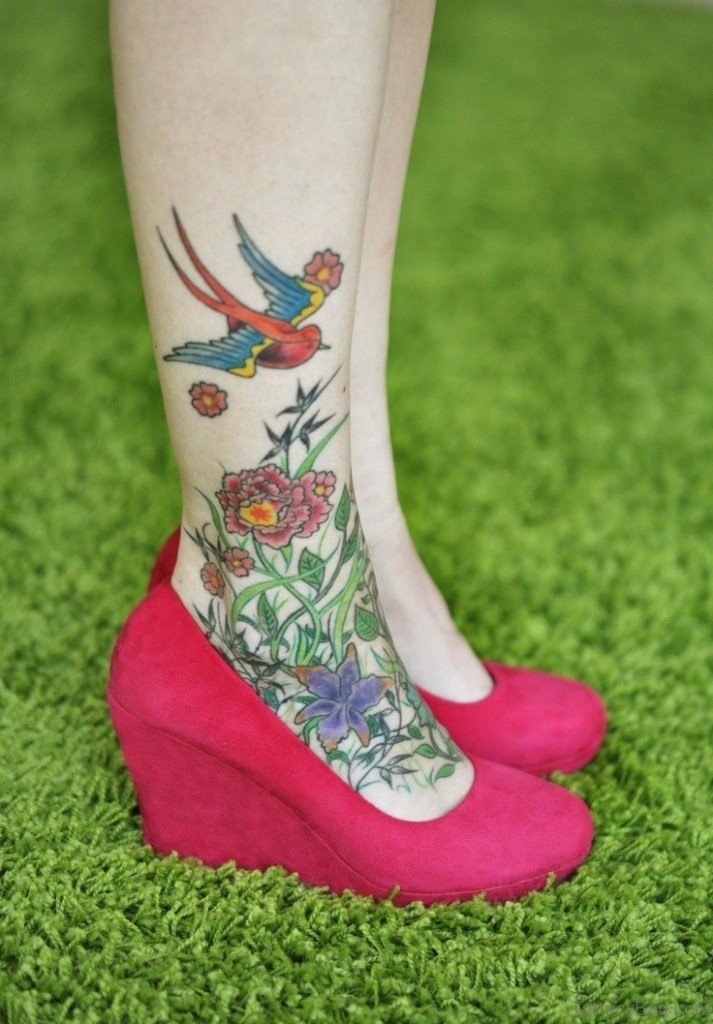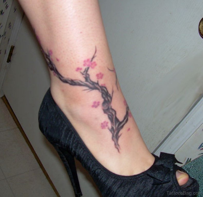 Wonderful Cherry Blowessom Tattoo On Ankle