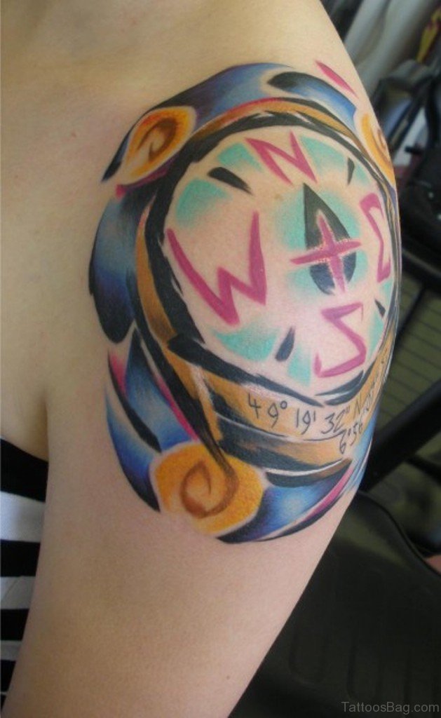 Bring Me That Horizon Compass Tattoo On Back Shoulder