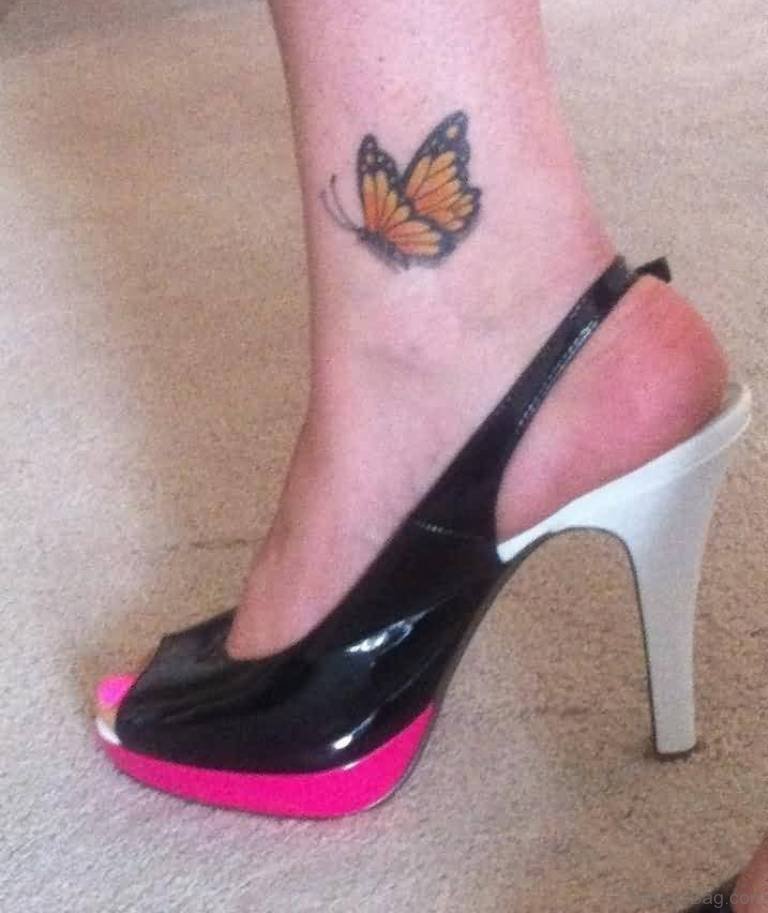 Awesome Orange Butterfly Tattoo On Ankle