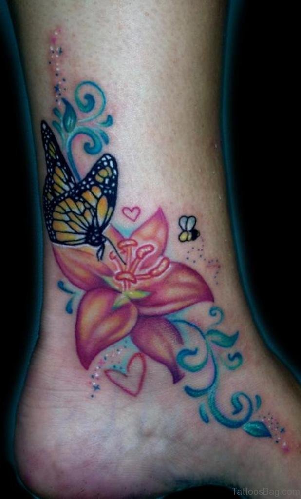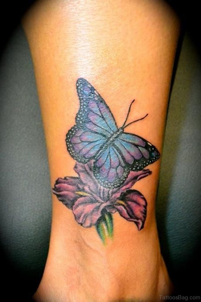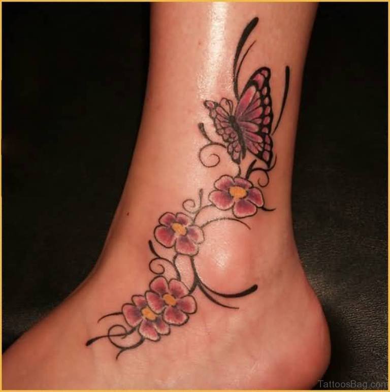 Butterfly On Flower Tattoo Design On Ankle