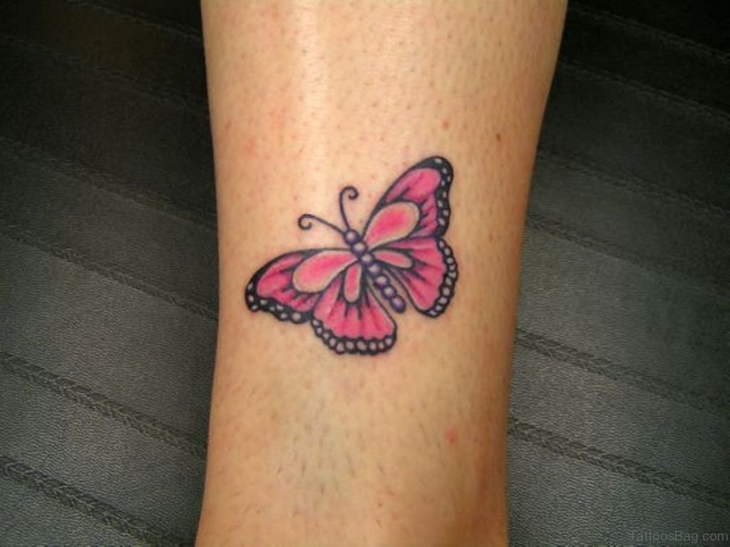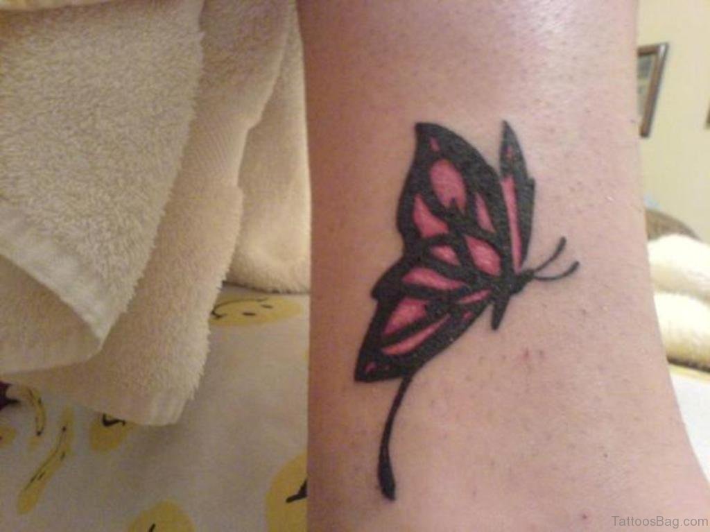 Pink Butterfly Tattoo On Ankle