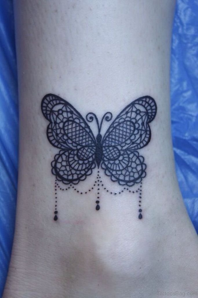 Lace Butterfly Tattoo On Ankle