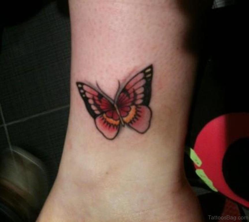 Red Butterfly Tattoo On Ankle