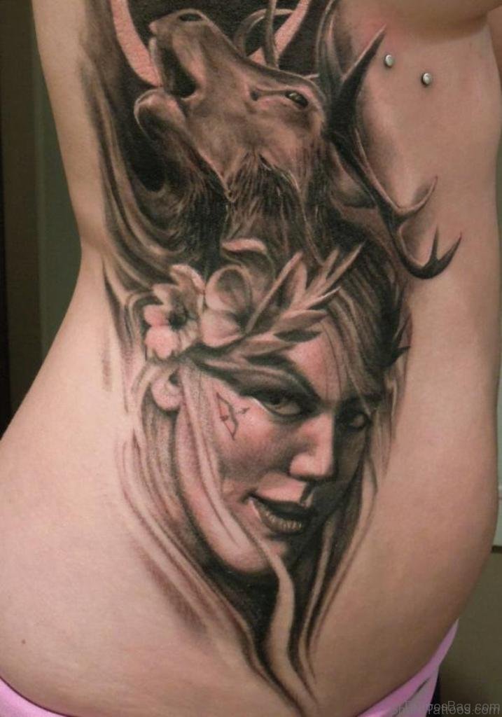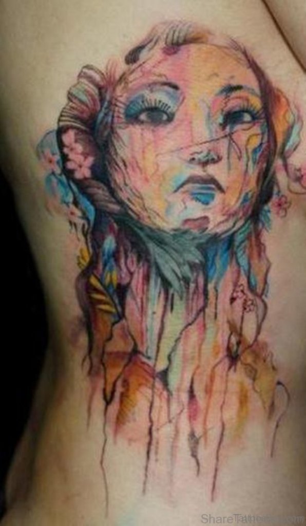 Female Portrait Tattoo On Rib