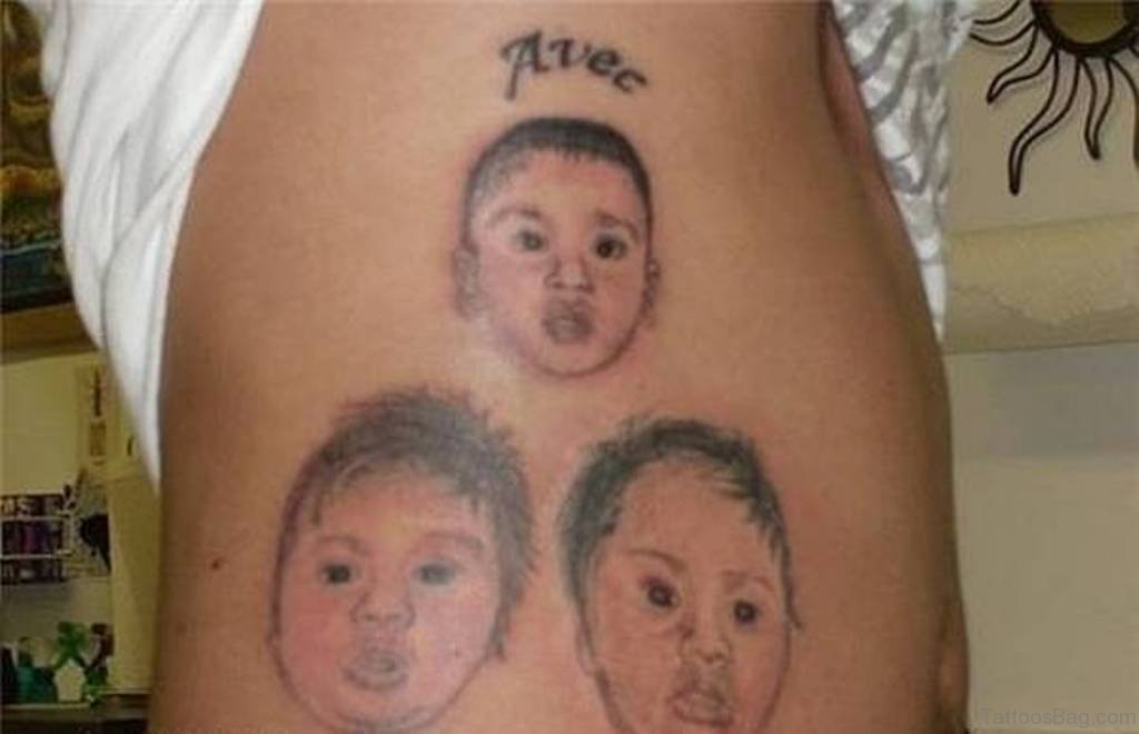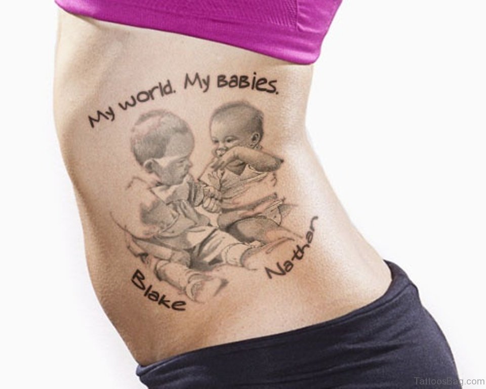 Babies Portrait Tattoos On Rib