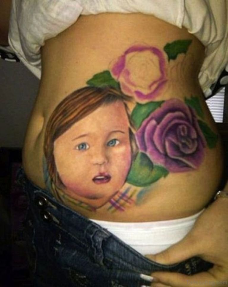 Baby Portrait Tattoo On Rib Side