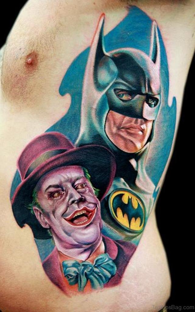 Batman And Joker Tattoo On Rib