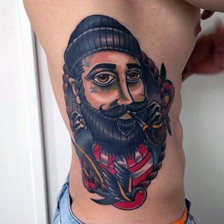 Funny Portrait Tattoo On Rib