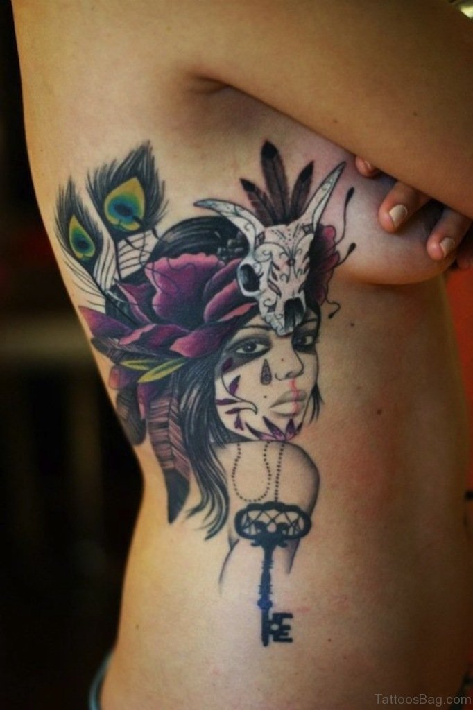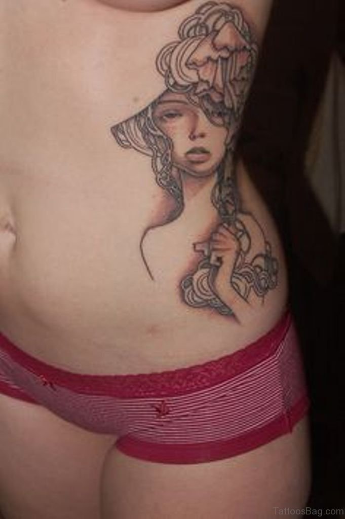Girl Portrait Tattoo On Rib Image
