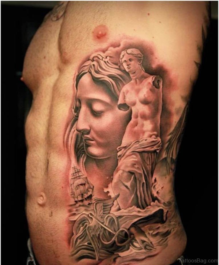 Virgin Mary Tattoo On Side Rib