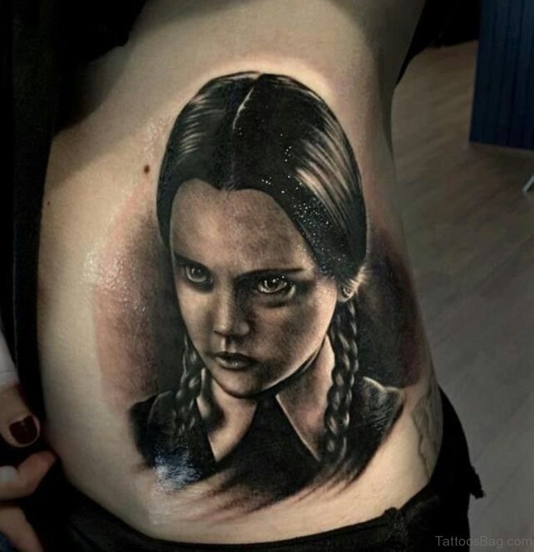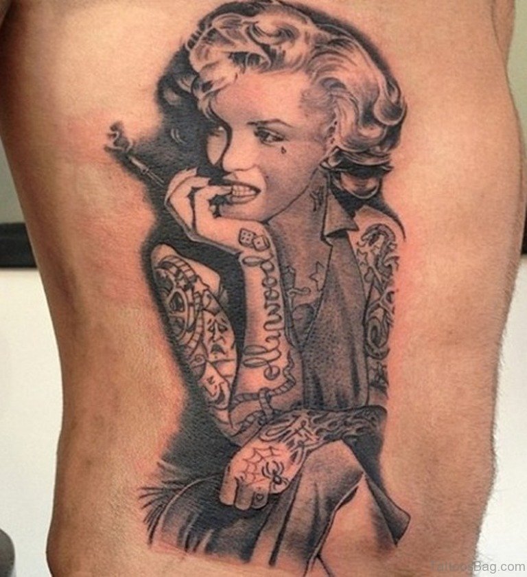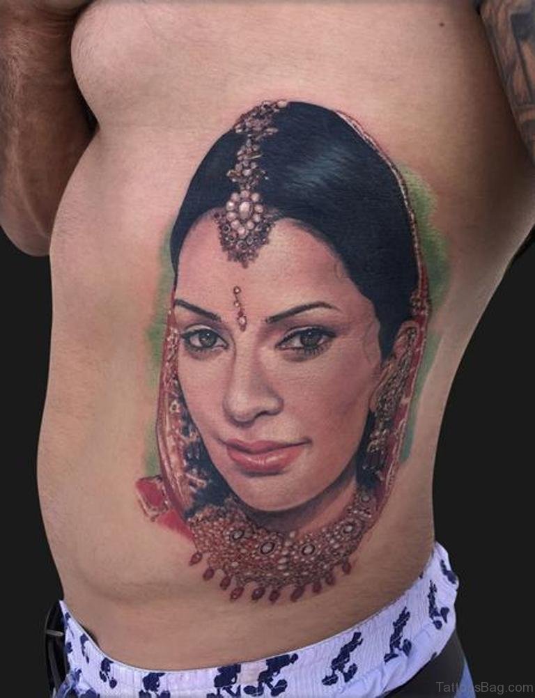 Portrait Tattoo Design On Rib