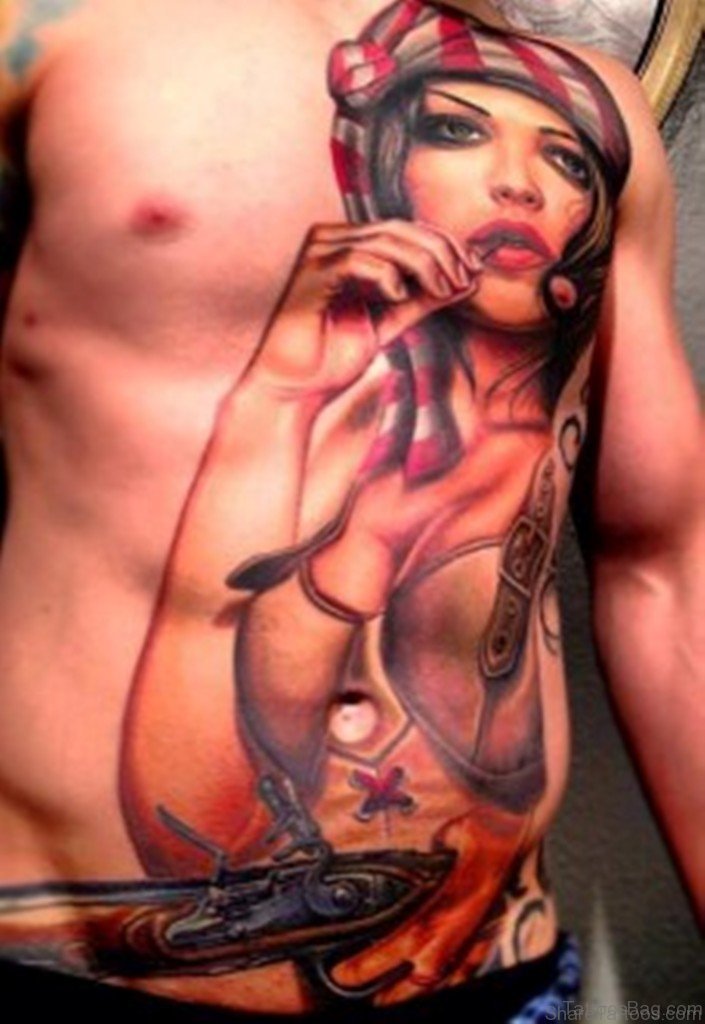 Hot Girl Portrait Tattoo Design On Rib