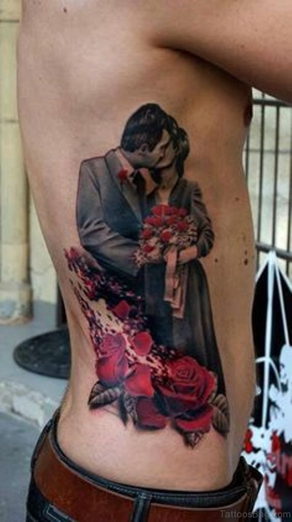 Amazing Couple Portrait Tattoo On Rib Side