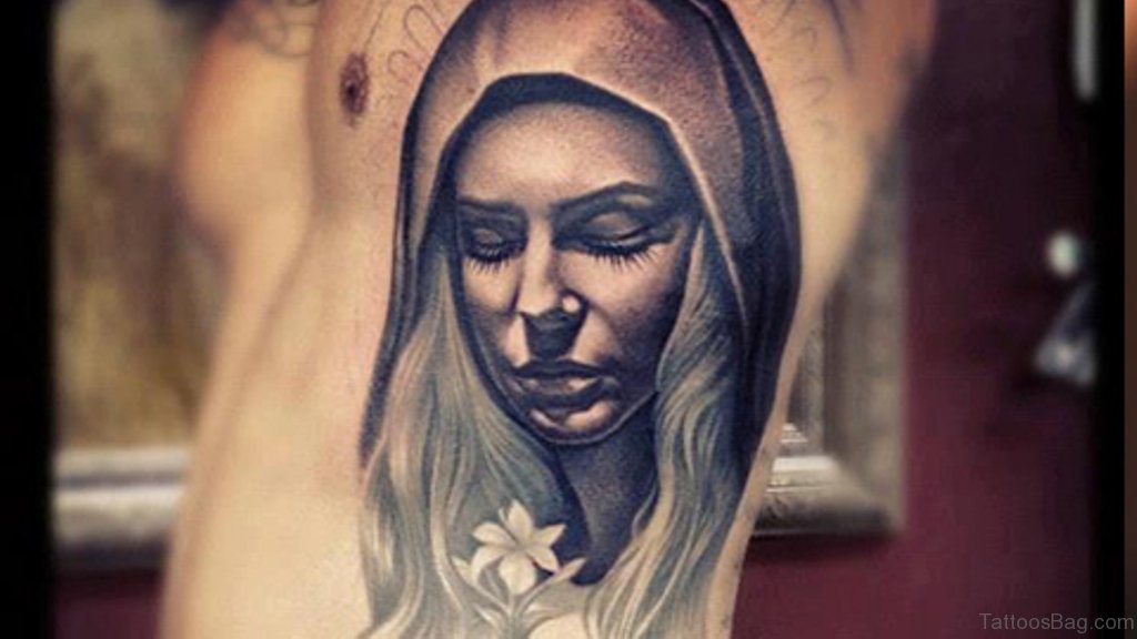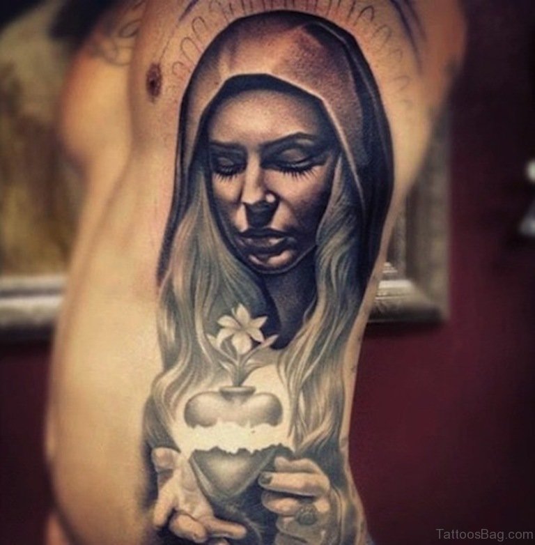 Virgin Mary Portrait Tattoo On Rib