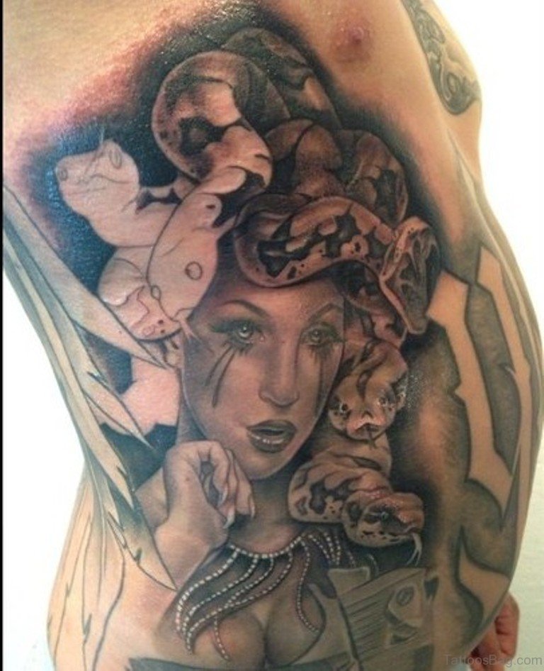 Medusa Portrait Tattoo On Rib Side For Men