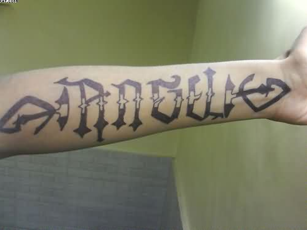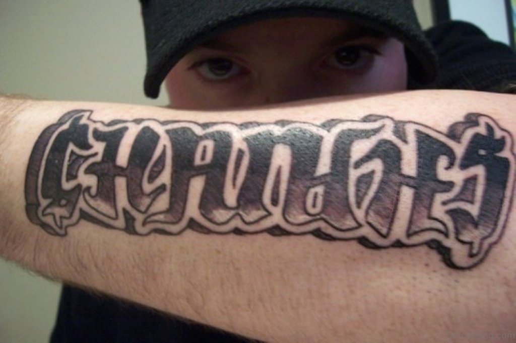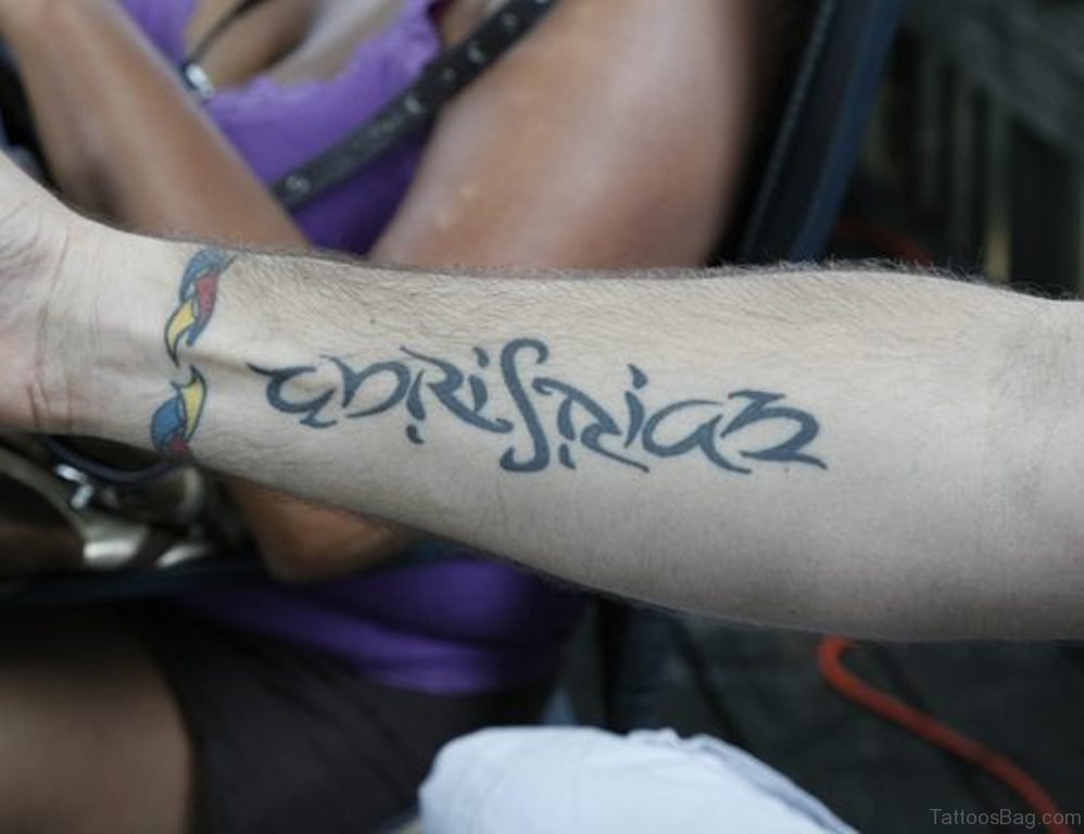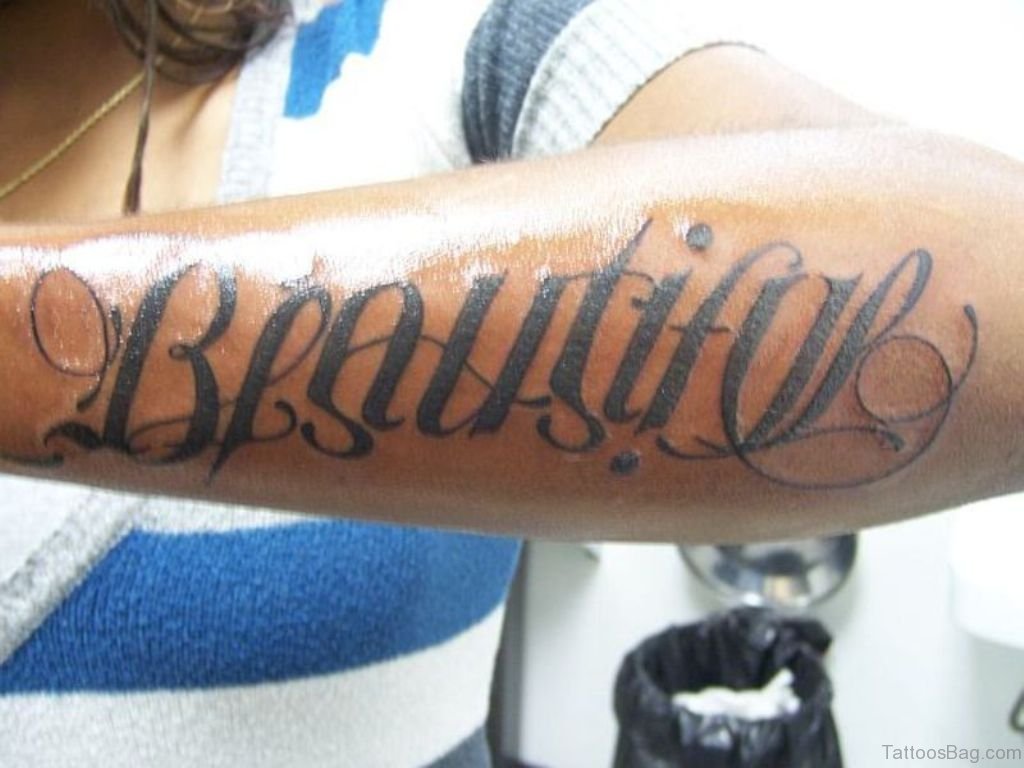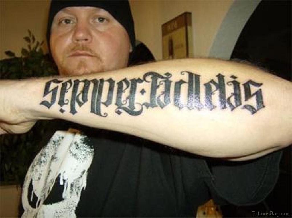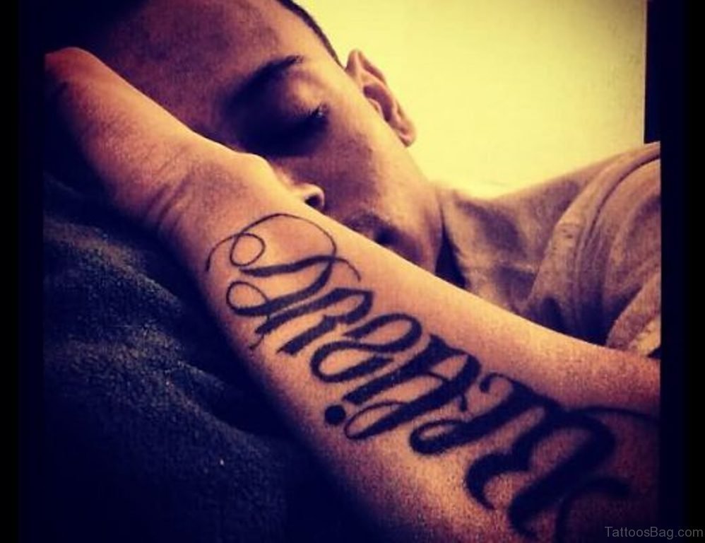 Amazing Ambigram Philosophy Lettering Tattoo Design For Arm