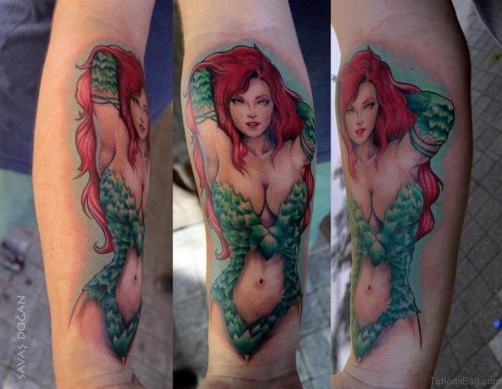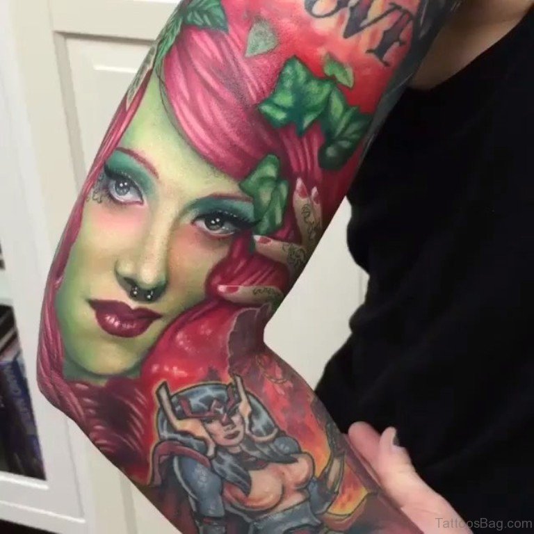 Colored Girl Portrait Tattoo On Arm