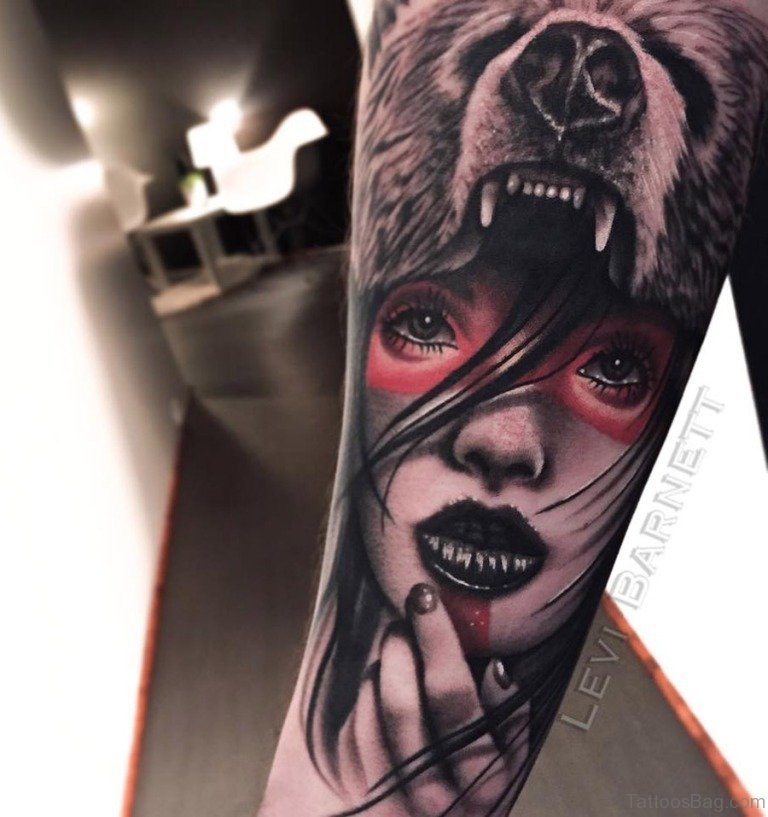 Bear And Girl Portrait Tattoo