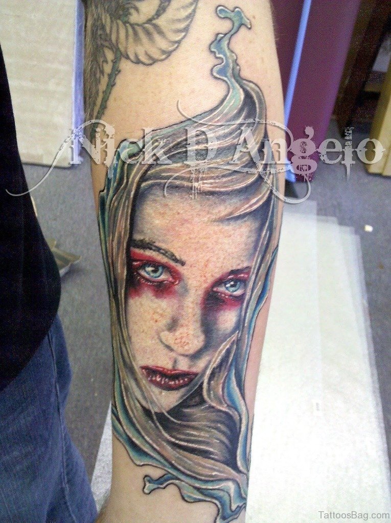 New Vampire Girl Portrait Tattoo For Arm