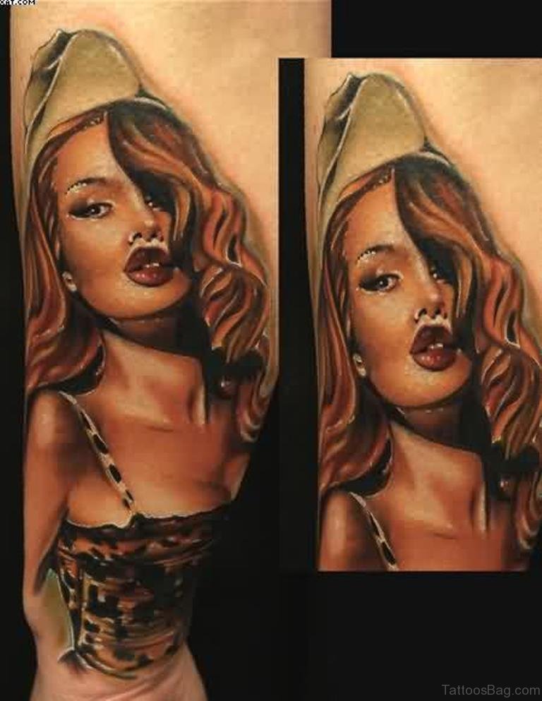Pretty Army Pin Up Girl Portrait Tattoo