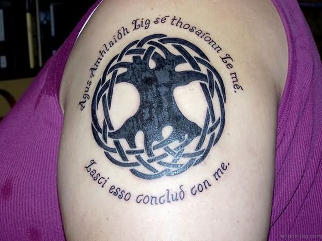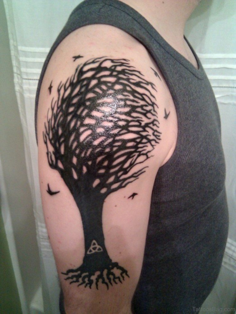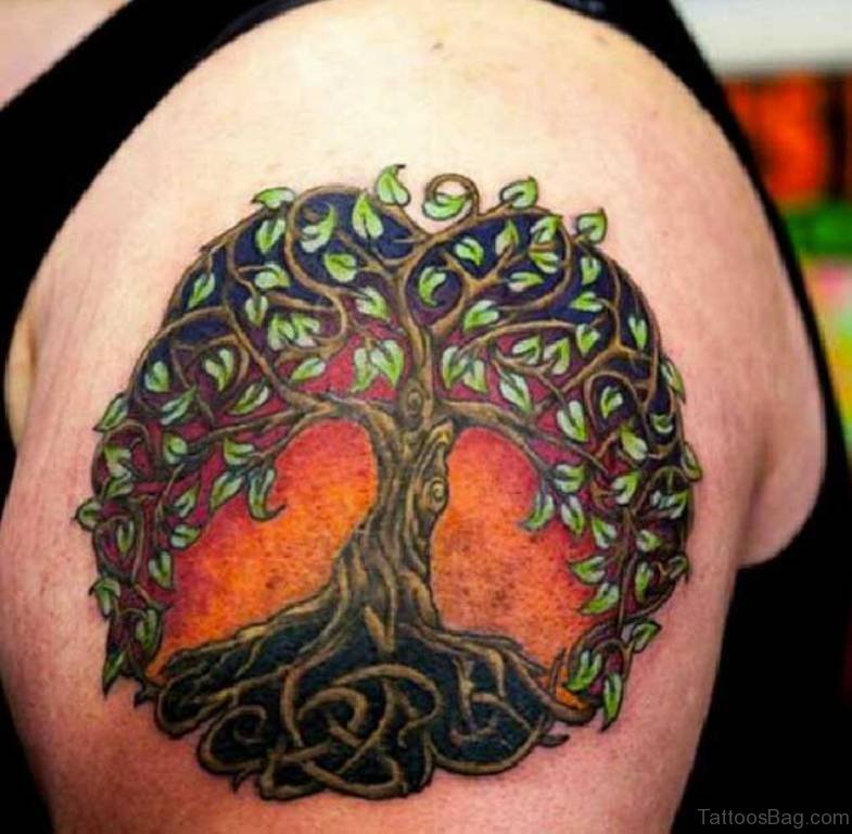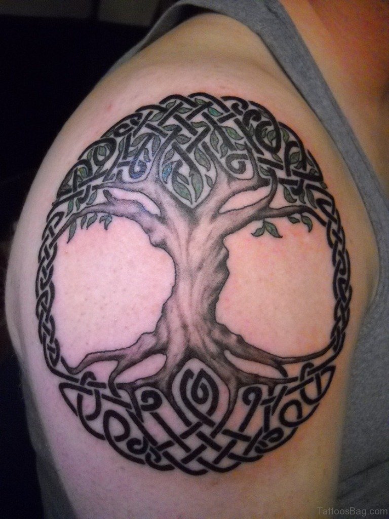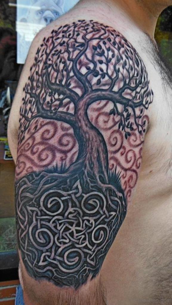 Awesome Celtic Pagan Tree Tattoo On Right Shoulder