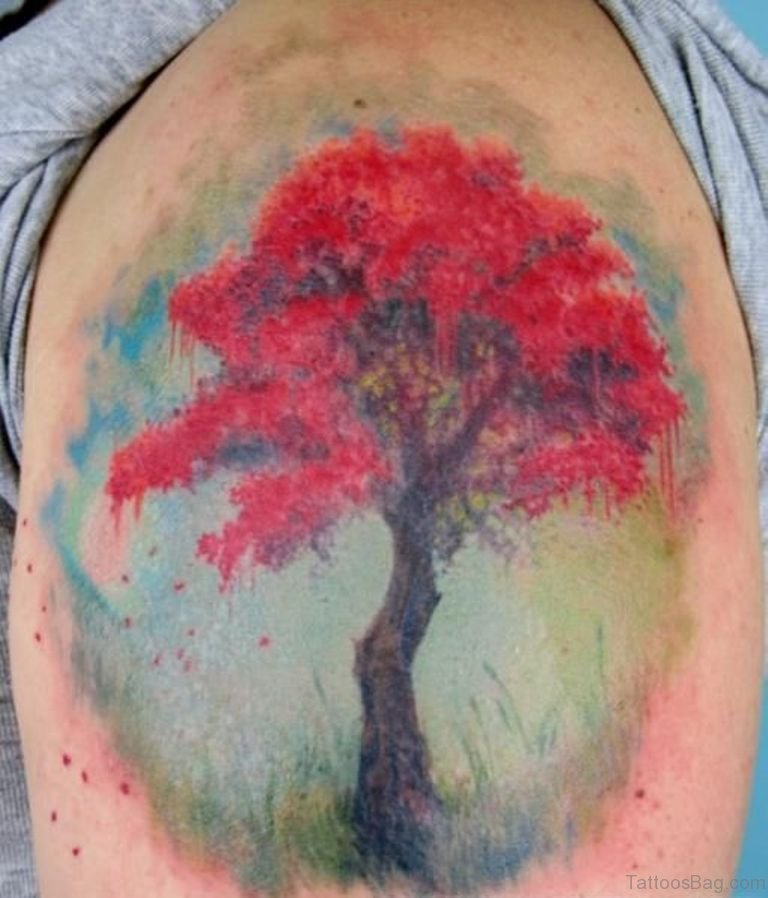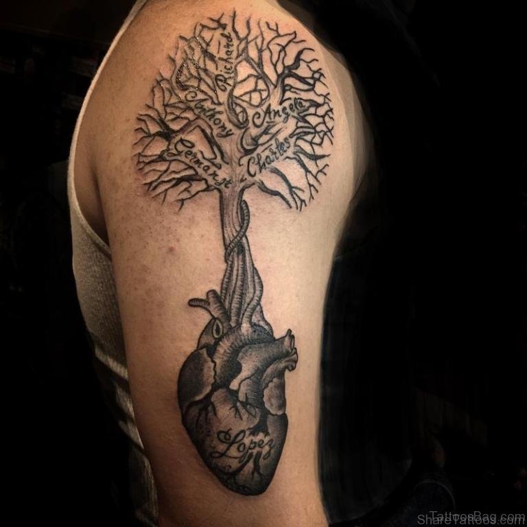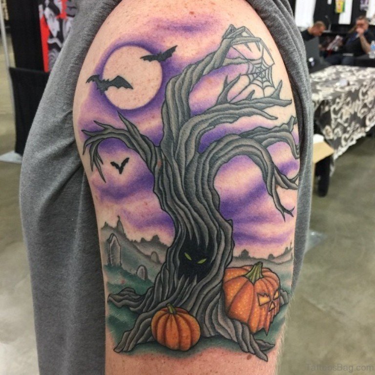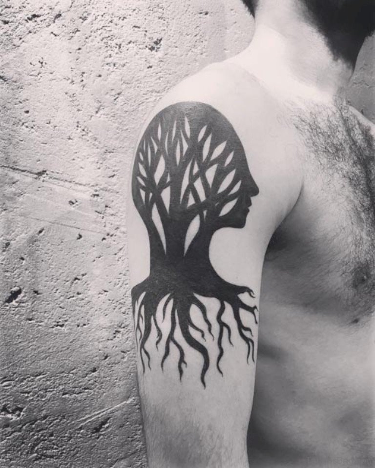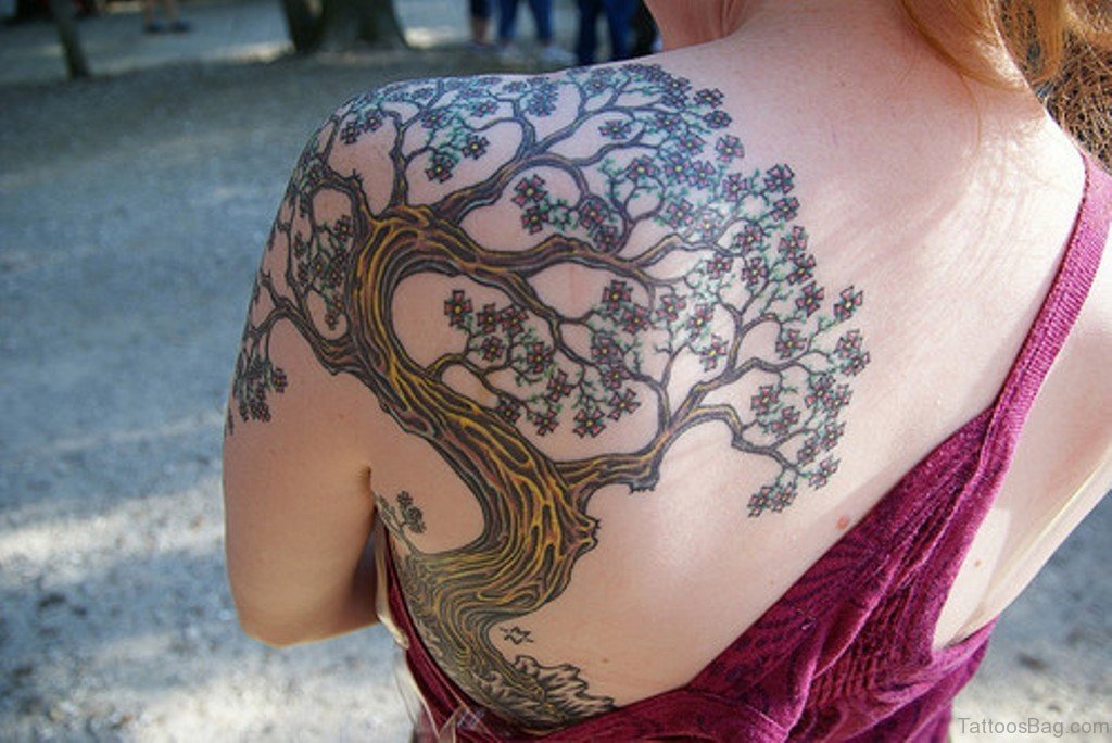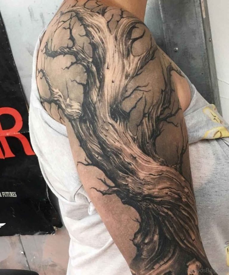 Awesome Celtic Pagan Tree Tattoo On Right Shoulder