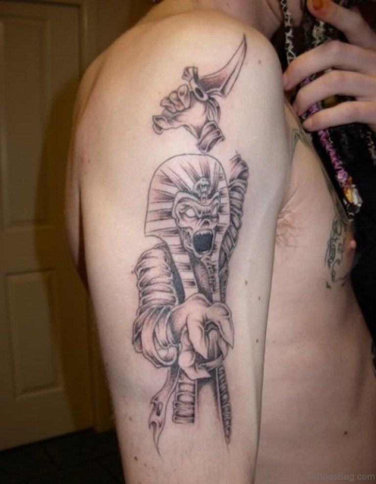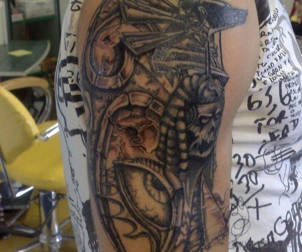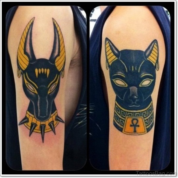 Memorial Anubis Egyptian Tattoo On Back Shoulder