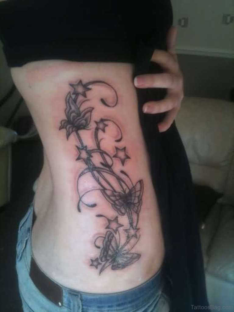 Lovely Flying Butterflies And Lovely Stars Tattoo