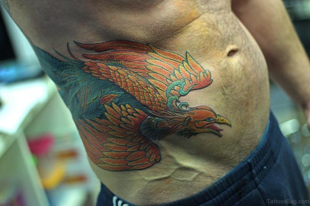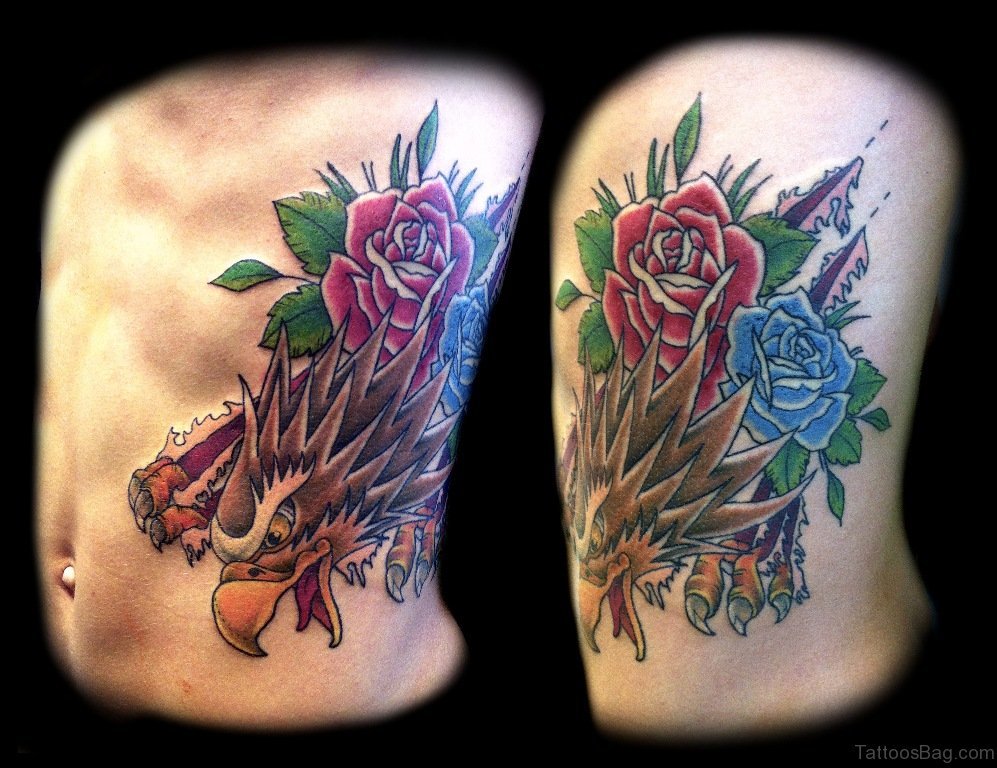 Colored Eagle Tattoo On Rib
