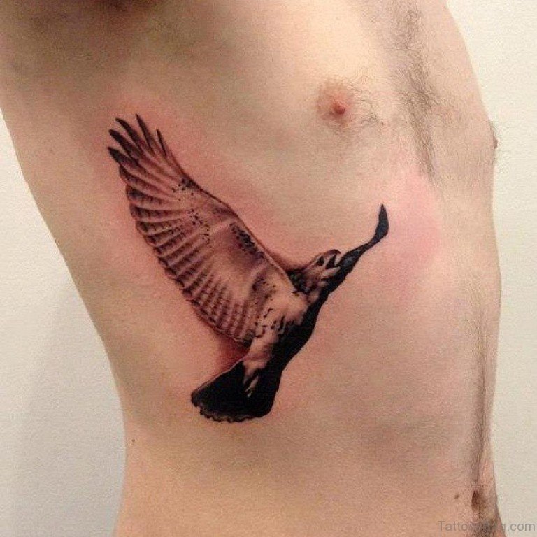 Flying Eagle Tattoo On Rib