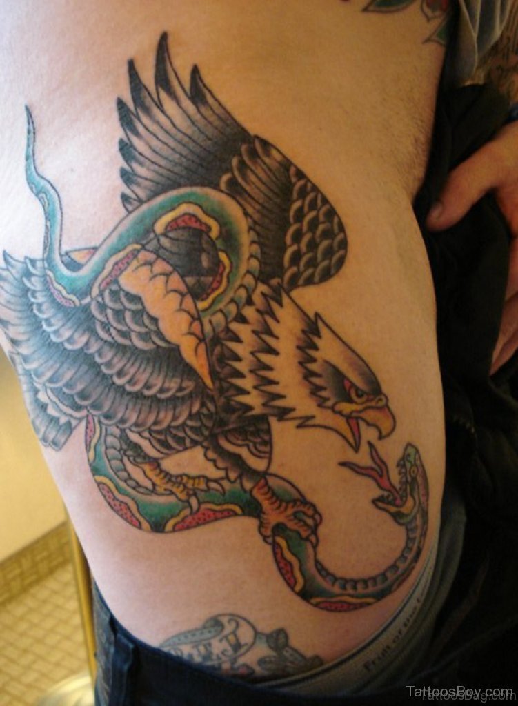 Eagle And Snake Tattoo On Rib