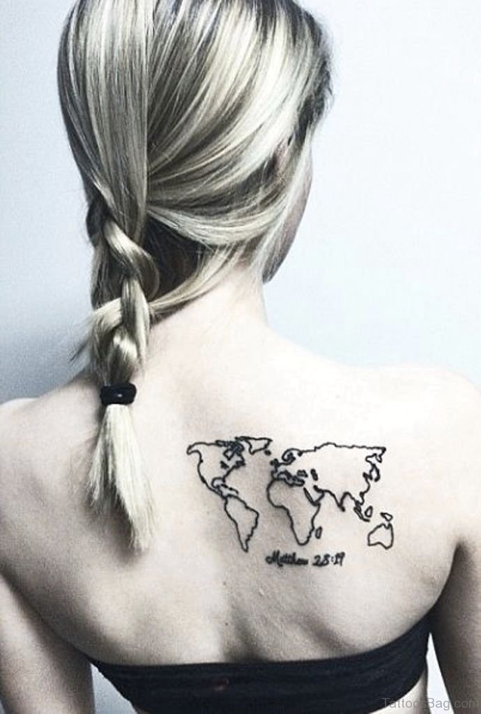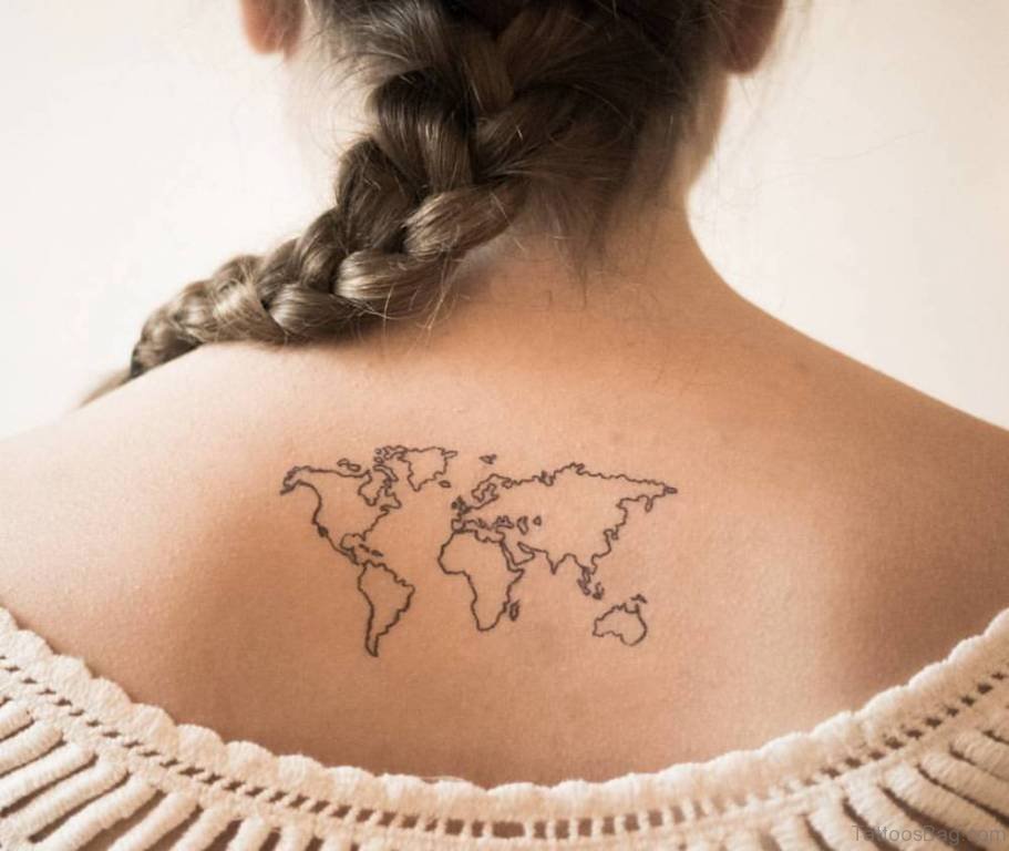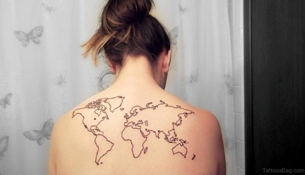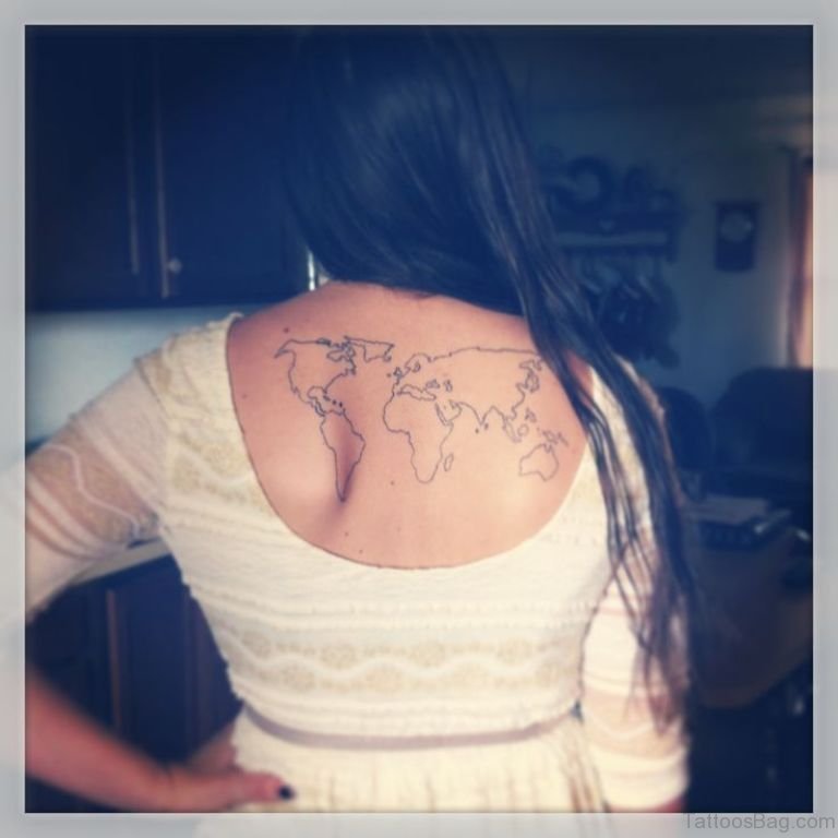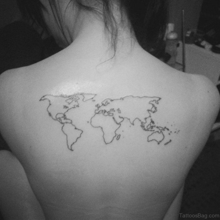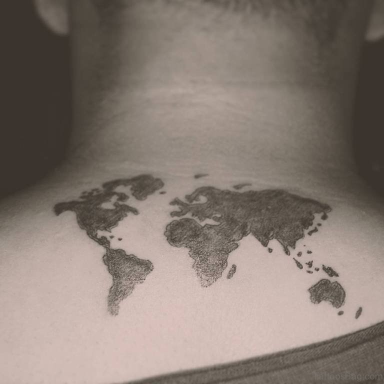 World Map Tattoo On Upper Back