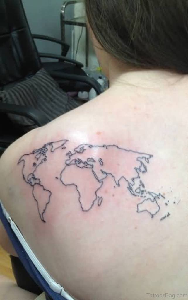 Grey World Map Tattoos On Upperback