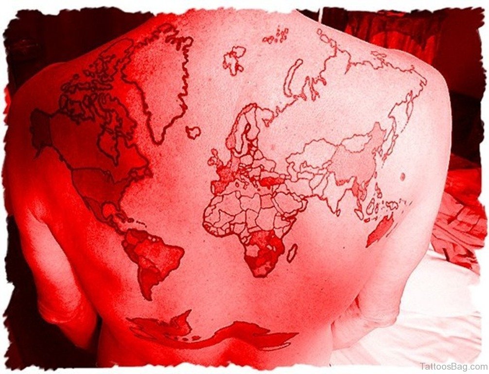 World Map Tattoo On Back