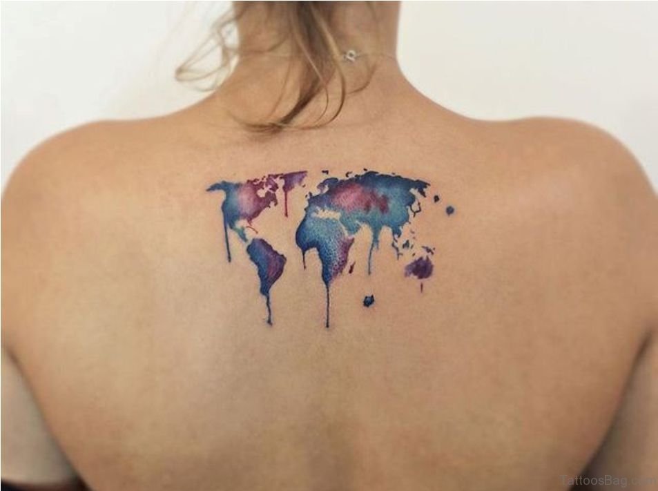 Watercolor Map Tattoo On Back