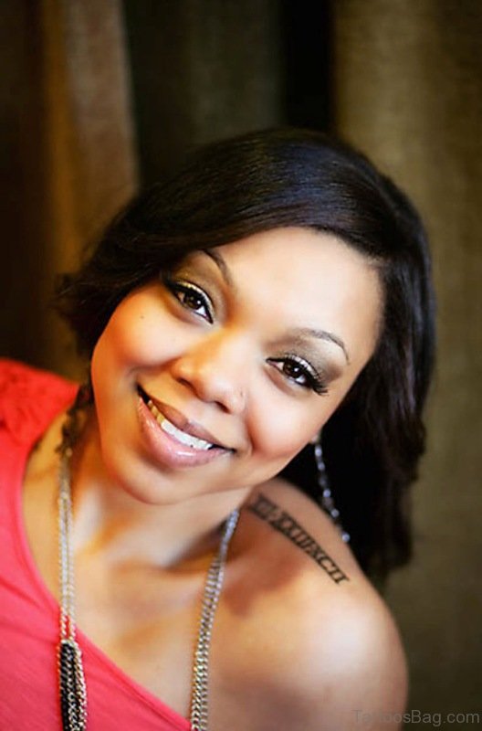 Simple Roman Tattoo Design On Front Shoulder