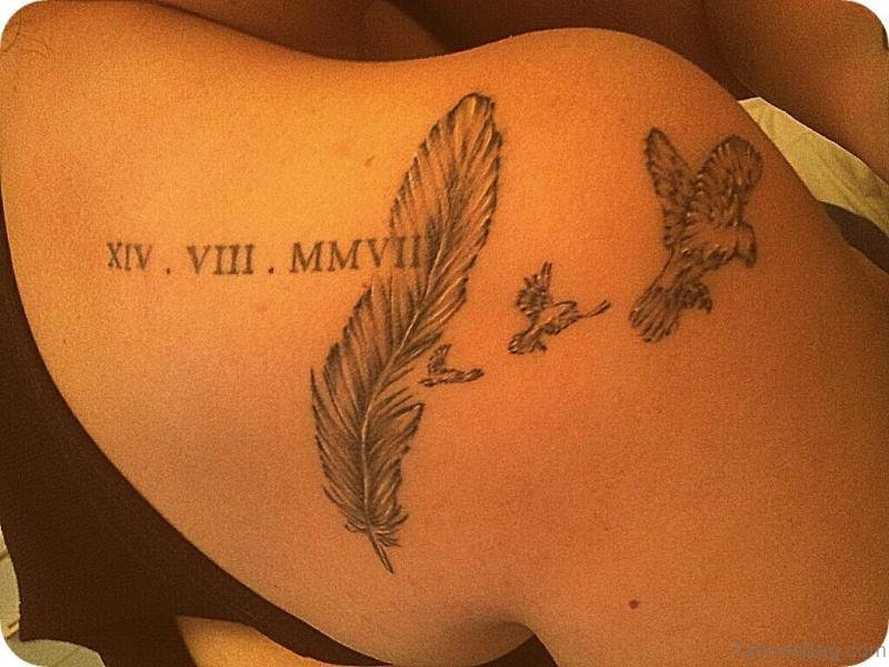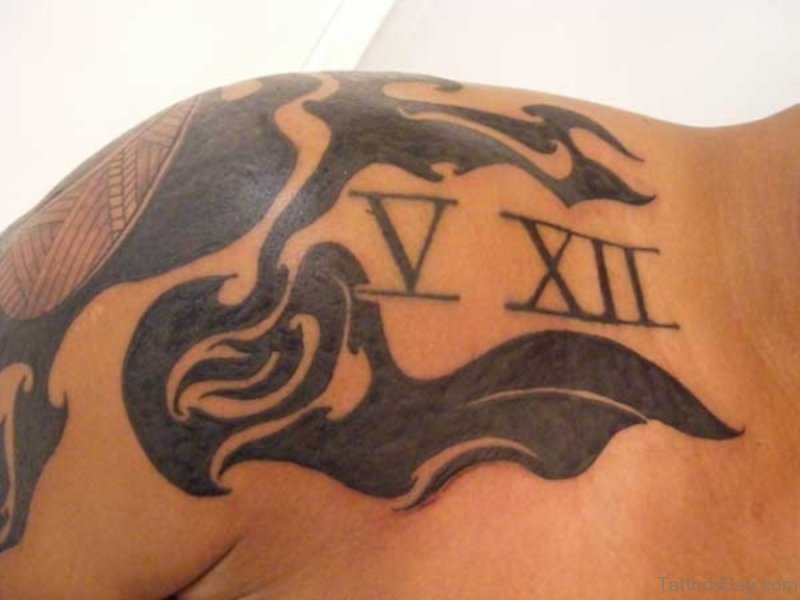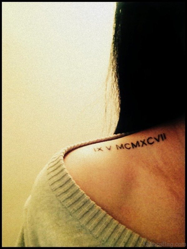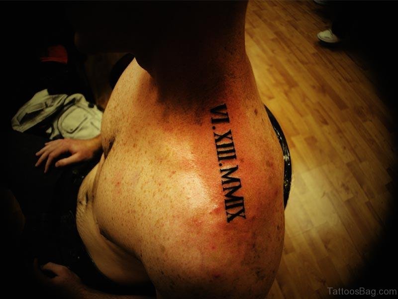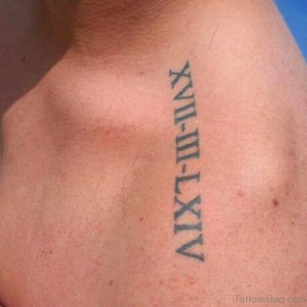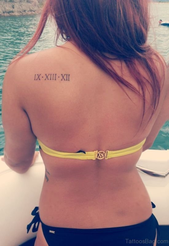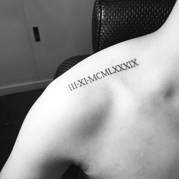 Sweet Roman Numeral Tattoo On Shoulder Back
