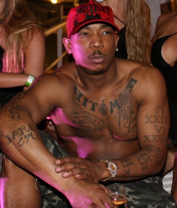 Roamn Tattoo On Left Shoulder