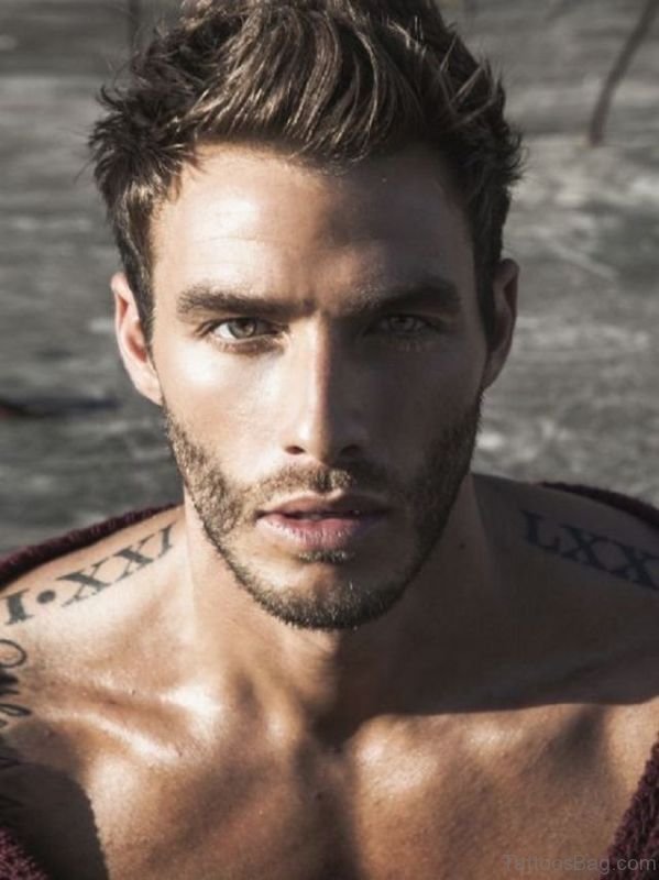 Roman Tattoo On Front Shoulder
