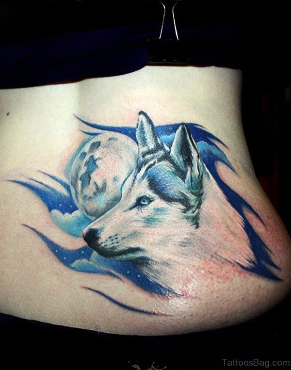 Elegant Alpha Wolf Tattoo On Stomach