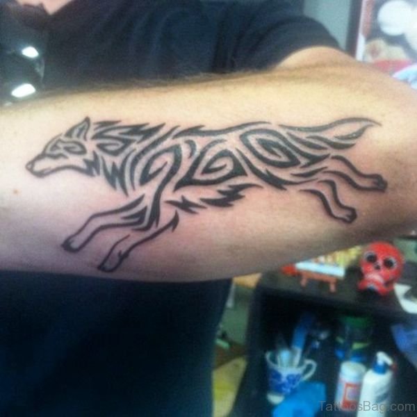Running Tribal Alpha Wolf Tattoo On Arm