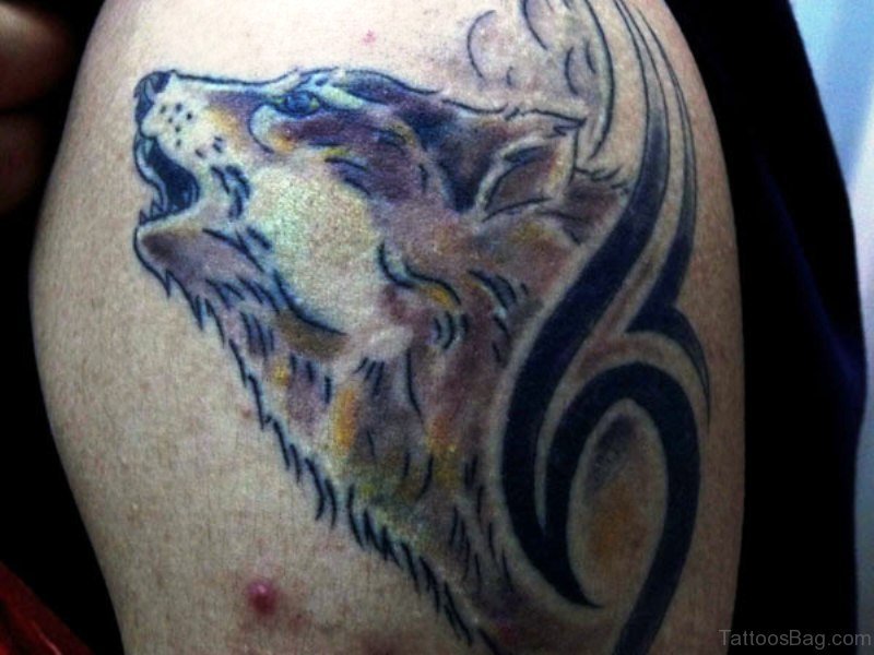 Tribal Wolf Tattoo On Shoulder