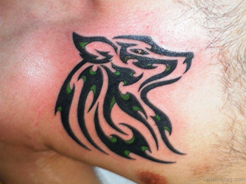 Wolf Tattoo On Neck 1